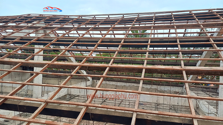 Kết cấu kèo mái không gian 3 lớp trên vì kèo đổ bê tông